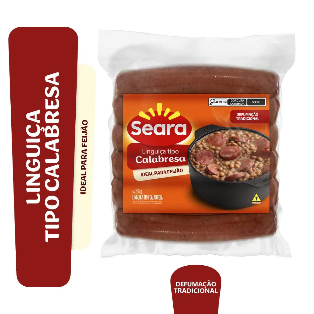 A linguiça calabresa Seara é feita com carnes nobres, defumada de forma tradicional e possui tempero marcante e saboroso. Preparo rápido e fácil, já é cozida e temperada, além de ser muito versátil, podendo ser assada, frita ou cozida.